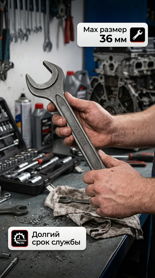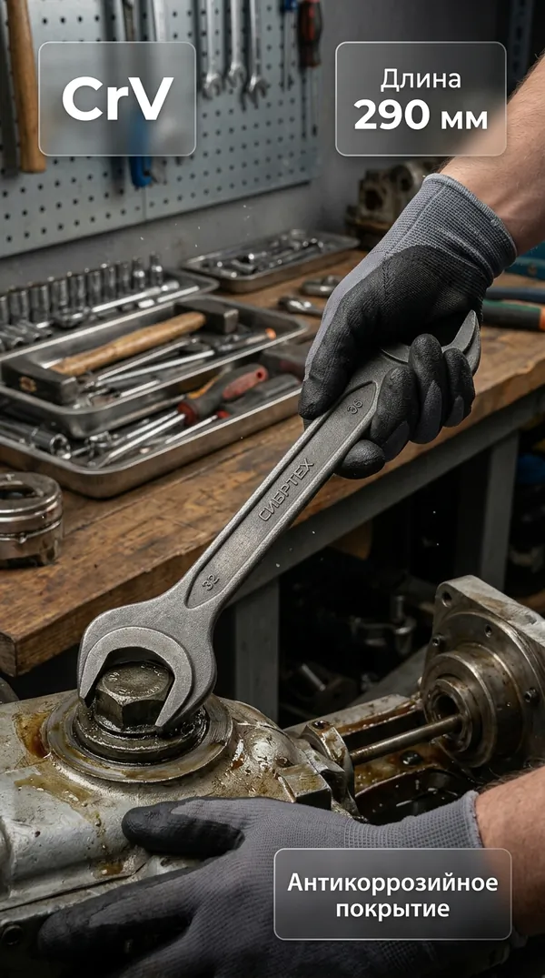 - • ключ рожковый Сибртех 32x36 мм CrV ГОСТ 2839 14333.