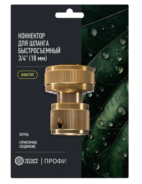 - • коннектор Четыре Сезона латунный, быстросъемный, 3/4", с аквастопом Профи 62-0310-F.