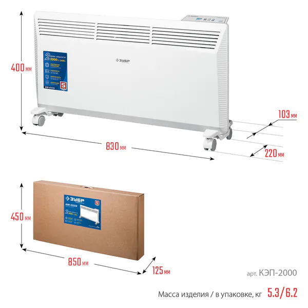 Конвектор электрический ЗУБР Профессионал ПРО серия 2 кВт КЭП-2000