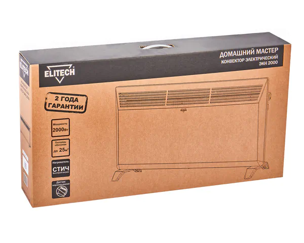 Max мощность, кВт2Площадь обогрева, м²25Установка обогревателяНаличие сетевой вилкиДаСтепень защиты от пыли и влагиДисплейНетНожки в комплектеДаТип нагревательного элементаВстроенный тепловентиляторНетФункция антизамерзанияНетМодельЭКН 2000 (стич)Вид термостатаРодина брендаРоссияПроизводительElitechСтрана изготовительКитайГарантия, мес24Условия гарантииСтандартная гарантия производителяИнверторная технологияНетЦветПоддержка Wi-fiНетЗащита от перегреваДаДлина кабеля, м1.2Габариты товара (ДхШхВ), мм830*400*80Масса нетто, кг4.3Габариты упаковки (ДхШхВ), мм850*130*450Вес брутто, кг4.998Комплектация