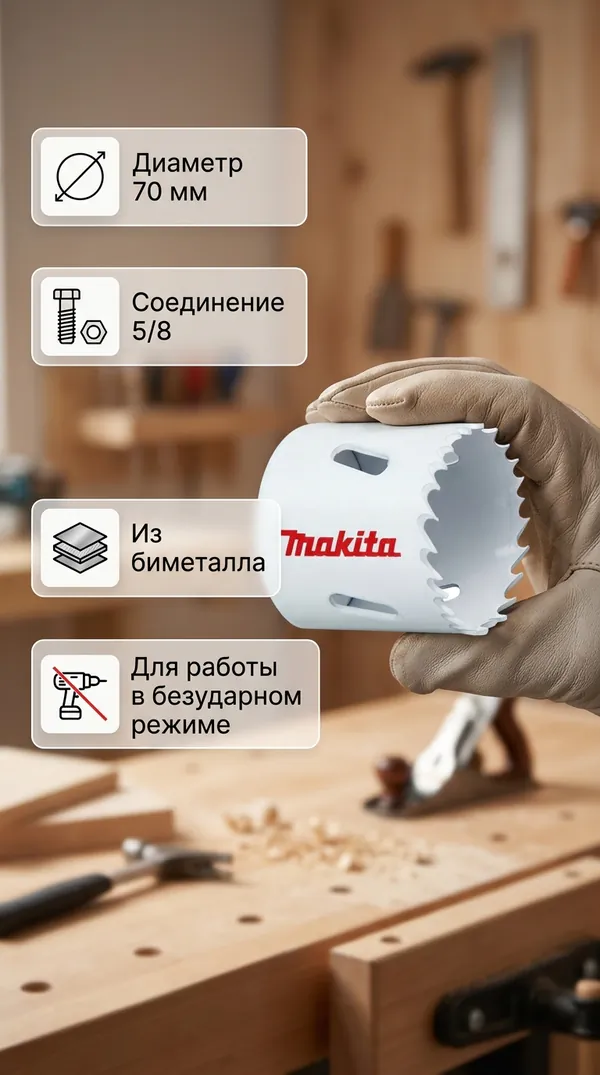 - • коронка биметаллическая Makita 70 мм D-25694.