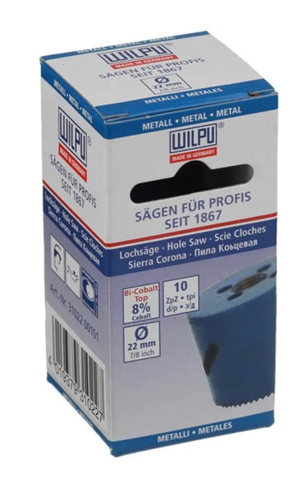 - • коронка биметаллическая WILPU 22 мм (мелкий зуб) 31022 00101.