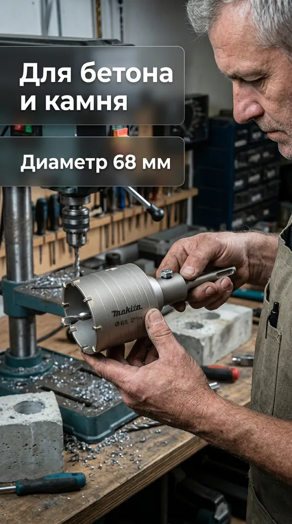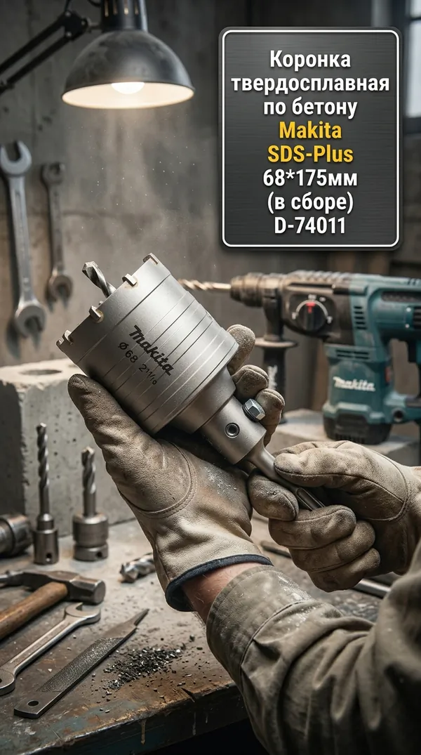 - • коронка твердосплавная по бетону Makita SDS-Plus 68*175 мм (в сборе) D-74011.