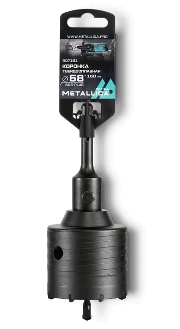 - • коронка твердосплавная SDS-plus METALLICA Optima 68*160/100 мм, h=50 мм, М22,0х2,0 мм, с адаптером 907191.