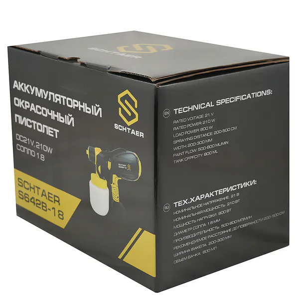 - Schtaer S SCHTAER 642B-18 аккумуляторный окрасочный пистолет, DC21V, 120W, сопло 1.8