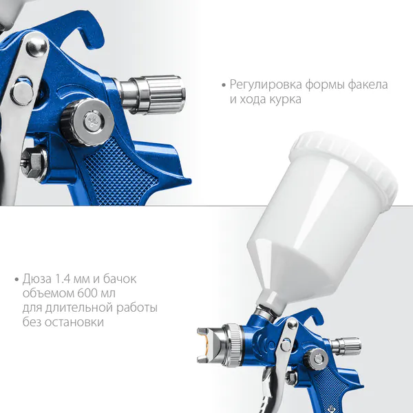 - ЗУБР PRO 600, HVLP, 1.4 мм, пневматический краскопульт с верхним бачком (06563-1.4) 06563-1.4_z01