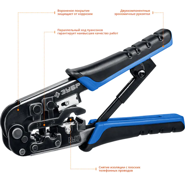 Кримпер универсальный Зубр Профессионал RJ-7 RJ45 RJ11/RJ12 22650