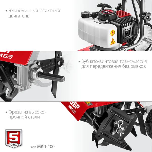 - ЗУБР 2.2 л.с., бензиновый культиватор (МКЛ-100)