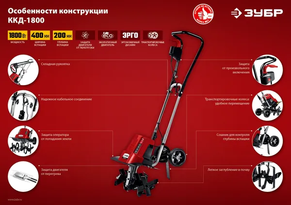 - ЗУБР 1800 Вт, электрический культиватор (ККД-1800).
