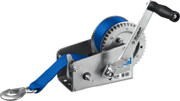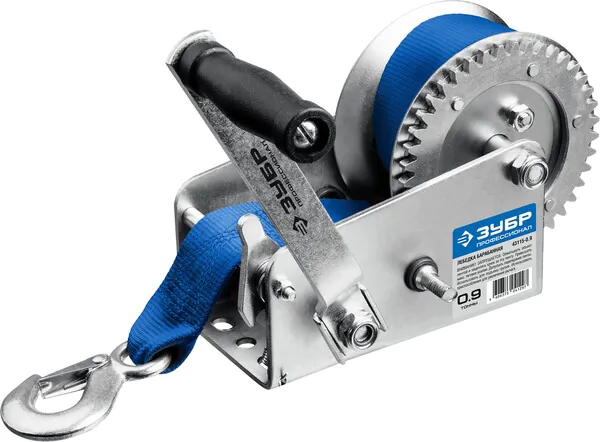 Лебедка ручная ЗУБР Профессионал 0.9 т, 10 м, барабанная тяговая ленточная 43115-0.9