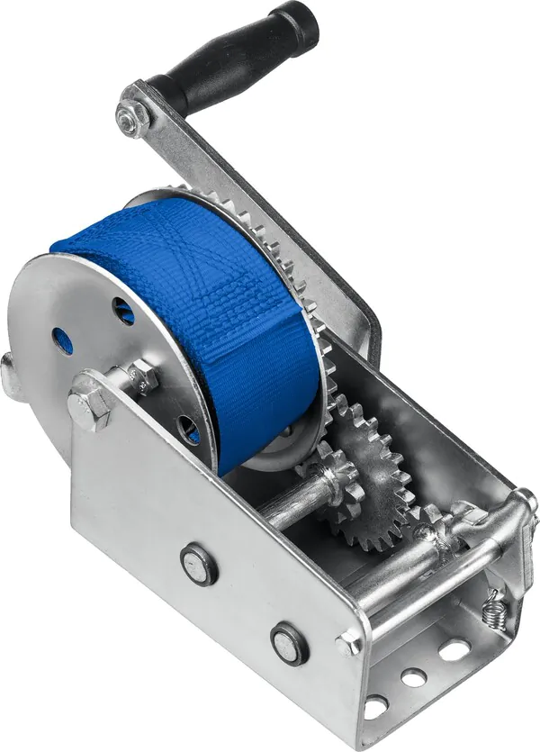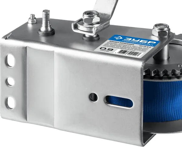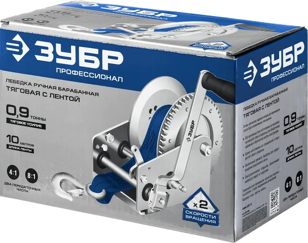 - ЗУБР 0.9 т, 10 м, ручная барабанная тяговая ленточная лебедка, Профессионал (43115-0.9)
