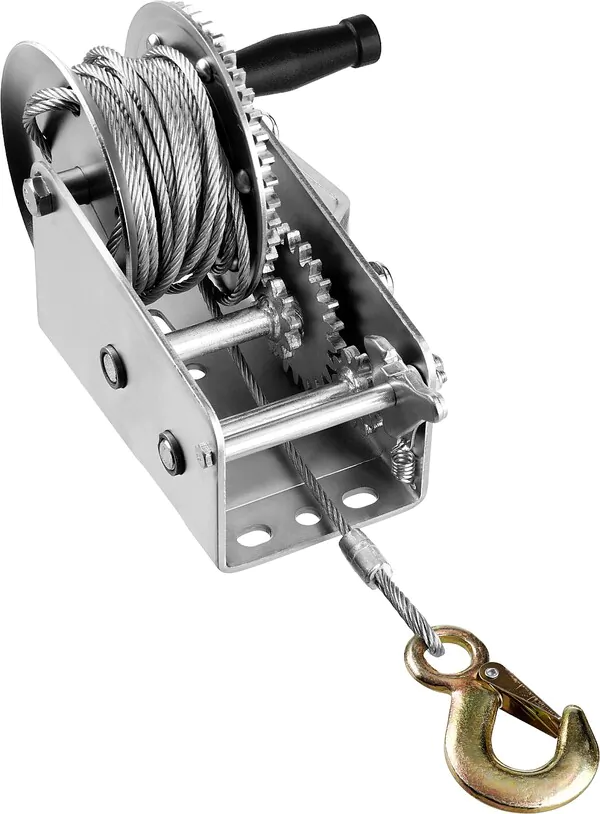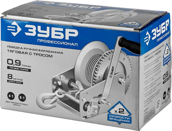 - ЗУБР 0.9 т, 8 м, ручная барабанная тяговая тросовая лебедка, Профессионал (43113-0.9) 43113-0.9_z01