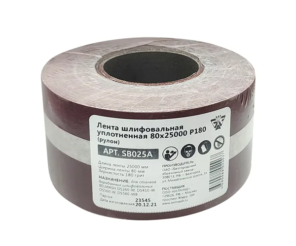 Лента шлифовальная уплотнённая Белмаш 80х25000 P180 (рулон) SB025A