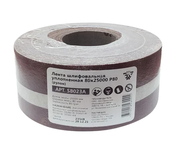 Лента шлифовальная уплотнённая Белмаш 80х25000 P80 (рулон) SB023A