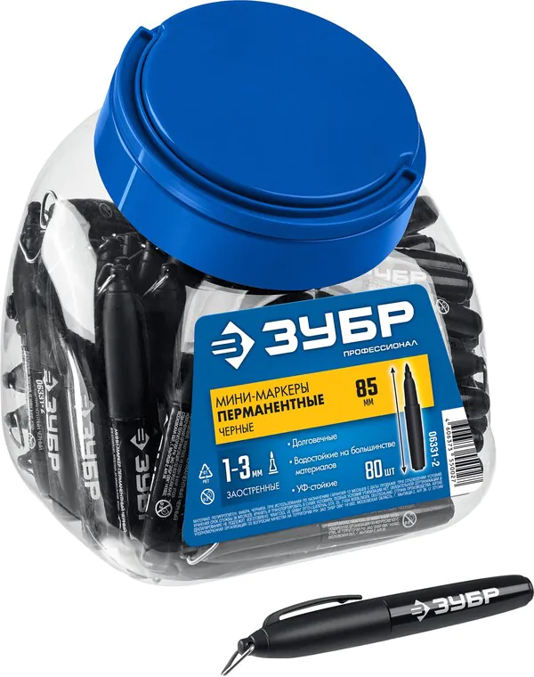 - ЗУБР Мини черный, 1-3 мм, 80 шт, перманентный маркер (06331-2)