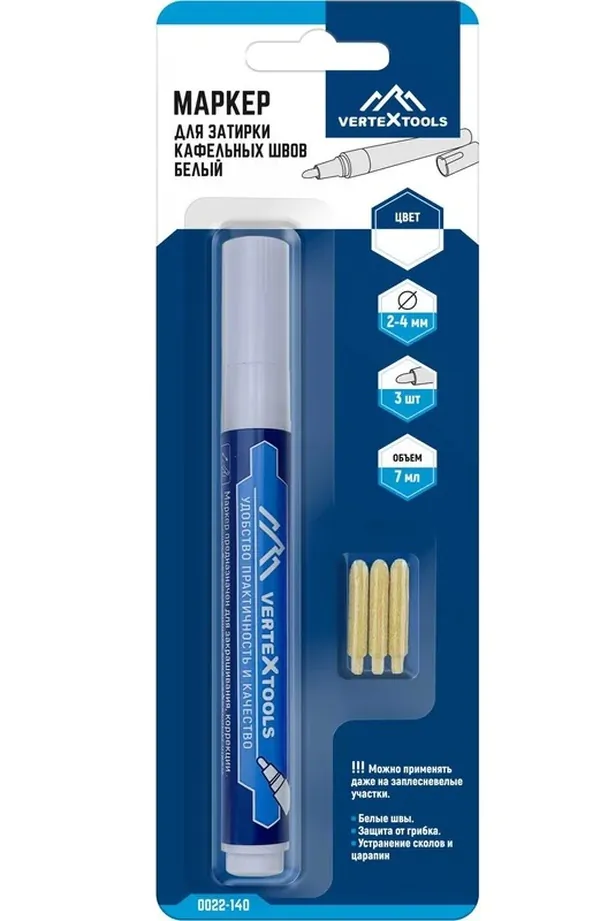 - • маркер Vertextools для затирки кафельных швов белый 0022-140;