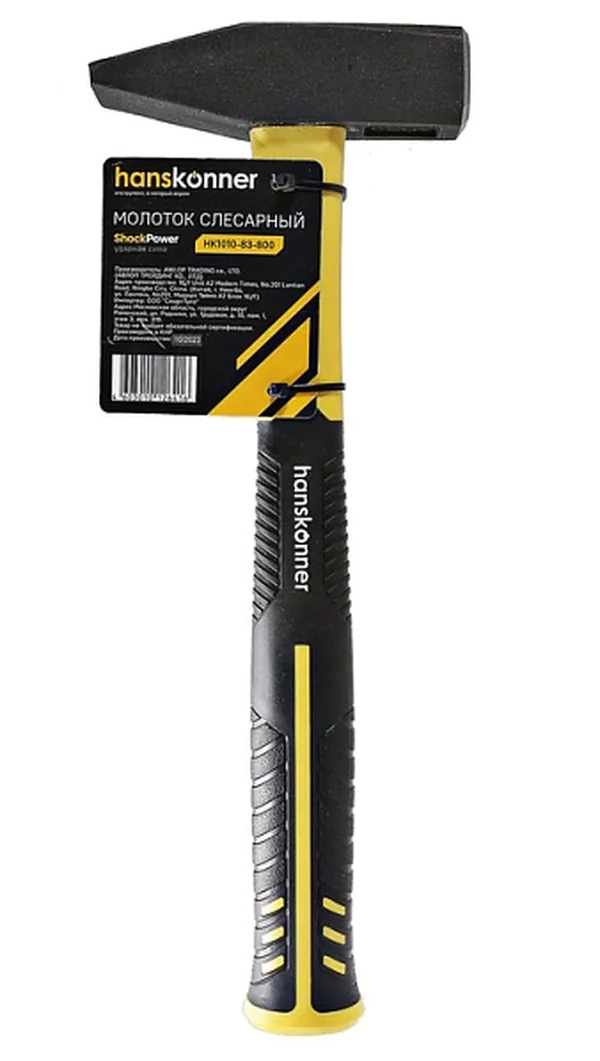 - • молоток слесарный Hanskonner УСИЛЕННЫЙ, фибергл,кованый боек 800гр, HK1010-83-800.