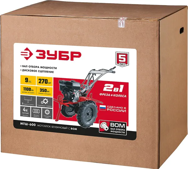 - ЗУБР 9 л.с., мотоблок с ВОМ (МТШ-600)