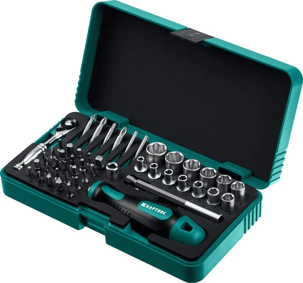 - KRAFTOOL X-Drive-49, 49 шт, набор бит и головок с битодержателем и трещоткой (25816)
