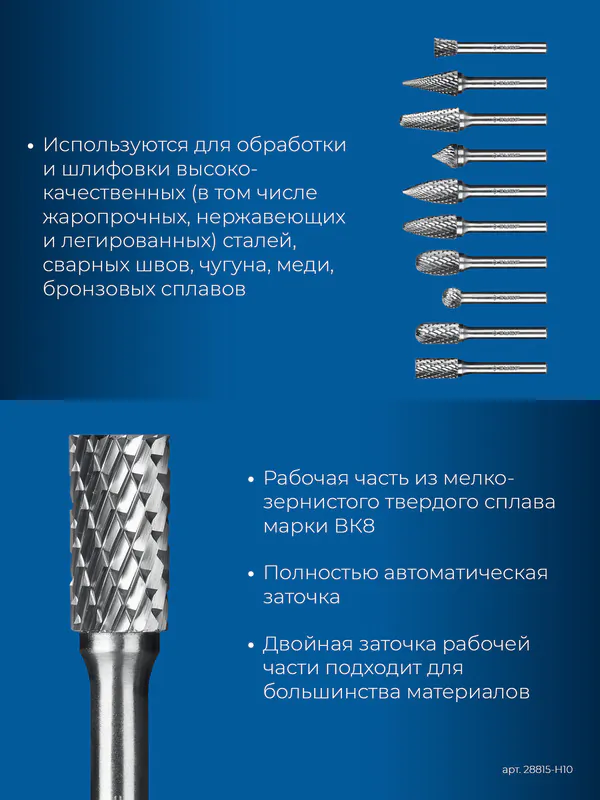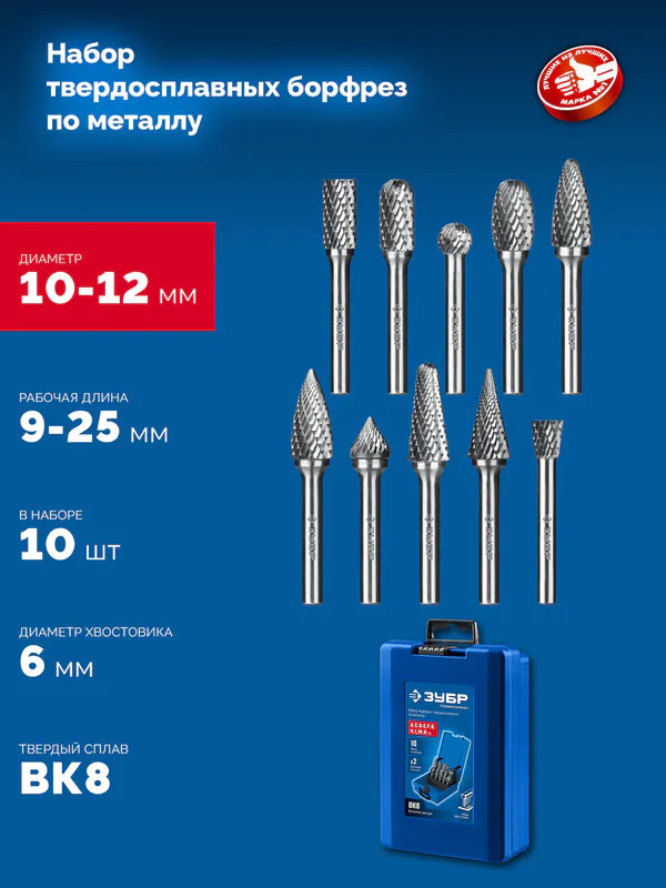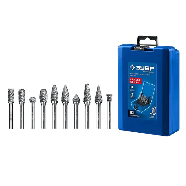 - ЗУБР 10 шт набор борфрез твердосплавных, хв-к 6 мм, ПРОФЕССИОНАЛ (28815-H10)
