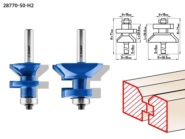 Набор фрез для вагонки ЗУБР Профессионал 2шт 50*30мм, 8мм 28770-50-H2