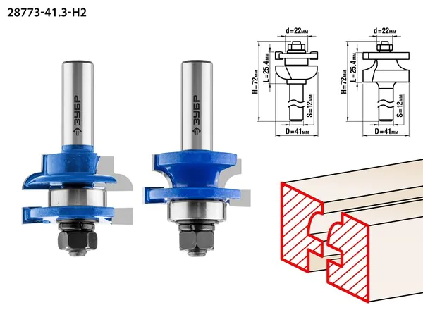 - ЗУБР 41 x 23 мм, хвостовик 12 мм, набор фрез рамочных №3, Профессионал (28773-41.3-H2)