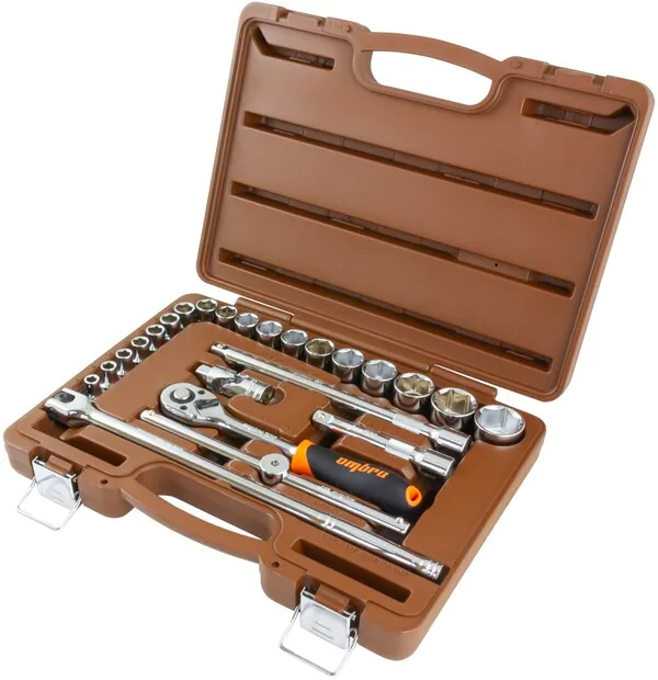 - Головки торцевые 1/2", 18 шт.: 8, 9, 10, 11, 12, 13, 14, 15, 16, 17, 18, 19, 21, 22, 24, 27, 30, 32 мм