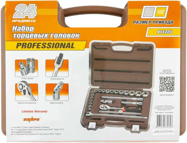 Набор головок торцевых с аксессуарами Ombra 1/2"DR, 8-32 мм, 24 предмета 911224
