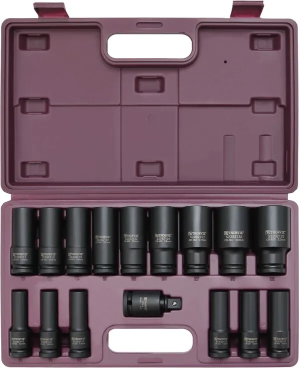 Набор головок торцевых ударных глубоких Thorvik 1/2"DR, 10-32 мм, 16 предметов S23S2116S