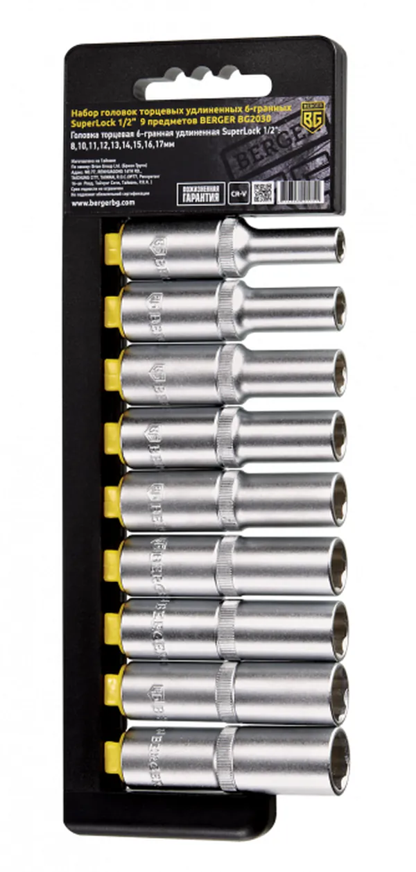 Набор головок удлиненных Berger 1/2" SuperLock 8-17мм 9 предметов BG2030