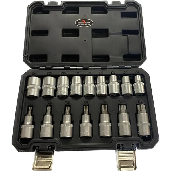 - • головки внутренние TORX 9 шт. - Е10, Е11, Е12, Е14, Е16, Е18, Е20, Е22, Е24;