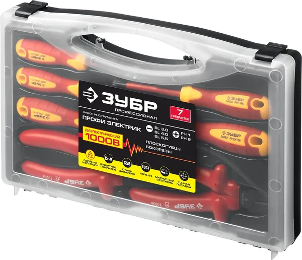 Набор губцевого инструмента Зубр диэлектрический, до ~1000В, маслобензостойкая рукоятка, 7 2214-H7_z01