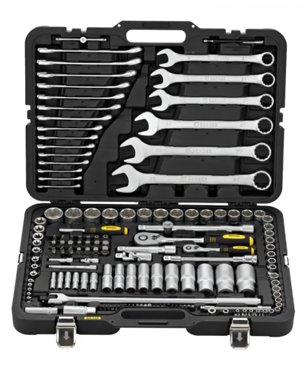 Ключи комбинированные: 6,7,8,9,10,11,12,13,14,15, 16,17,18,19,20, 21,22,24,27,30,32 мм • 21 шт;