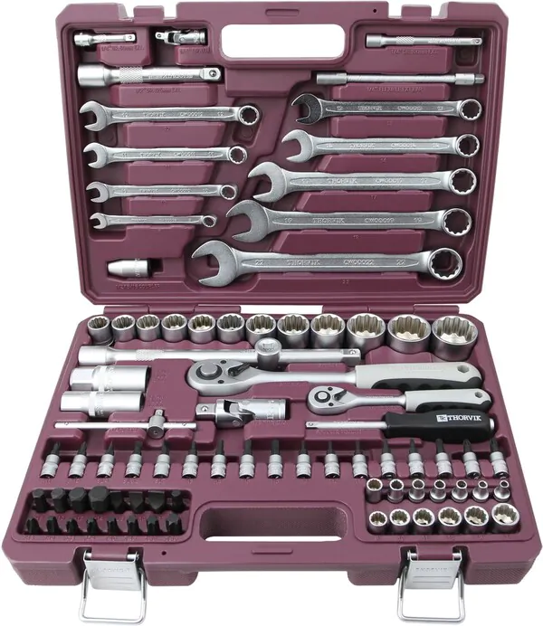 Набор инструмента Thorvik 1/4", 1/2"DR с головками торцевыми 12-гранными, 82 предмета TS082/12 54008