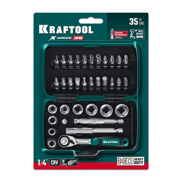 - KRAFTOOL X-Drive 35, 35 предм., универсальный набор инструмента 1/4″ (27974)