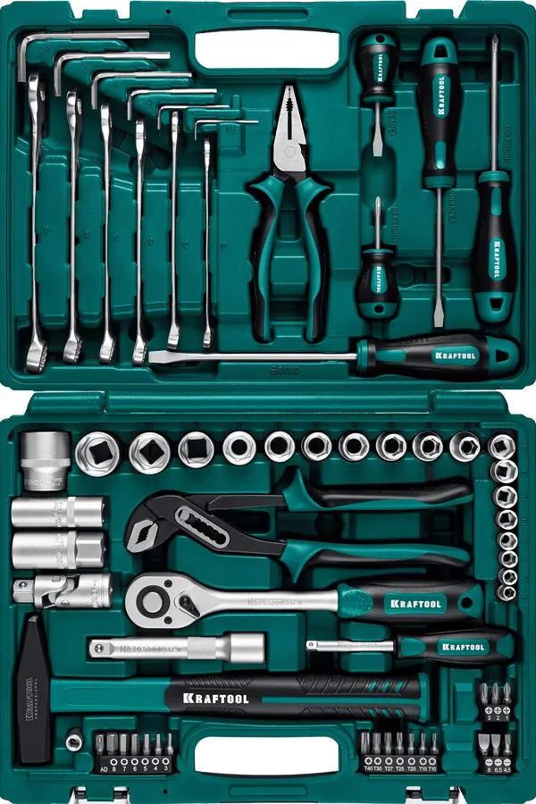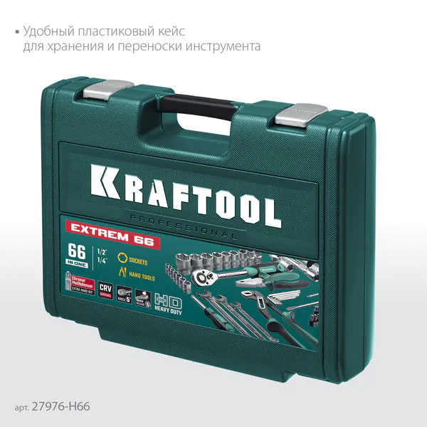 - KRAFTOOL EXTREM-66, 66 предм., (1/2″+1/4″), универсальный набор инструмента (27976-H66) 27976-H66_z01