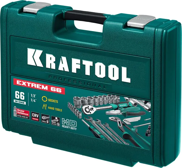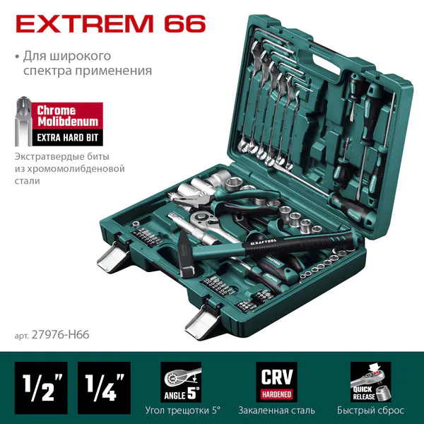 Набор инструмента универсальный KRAFTOOL EXTREM-66, 66 предм., 1/2″+1/4″ 27976-H66_z01