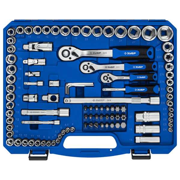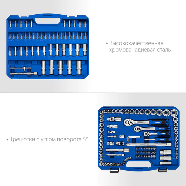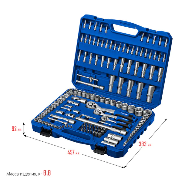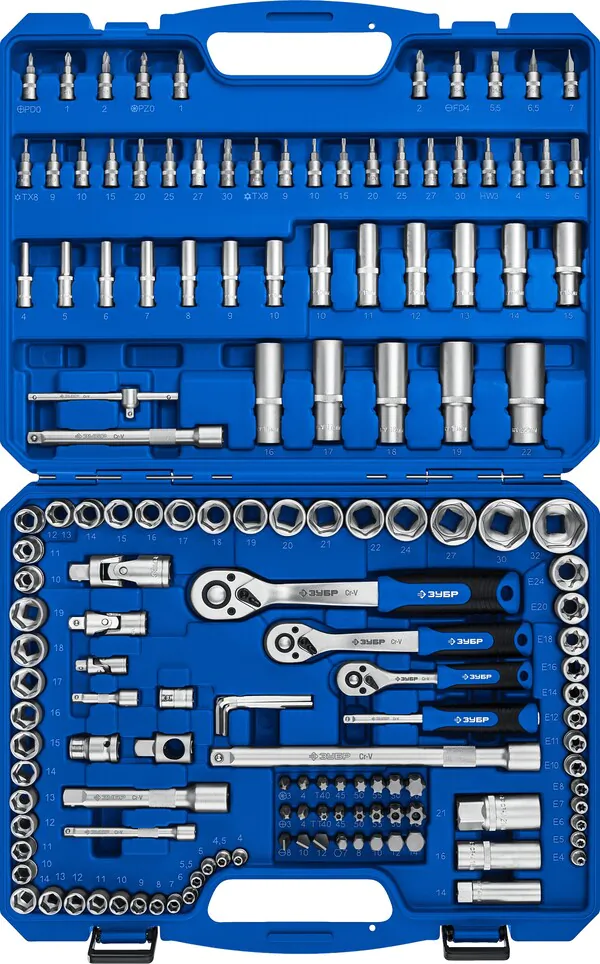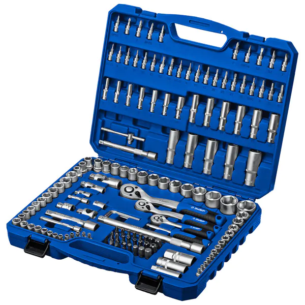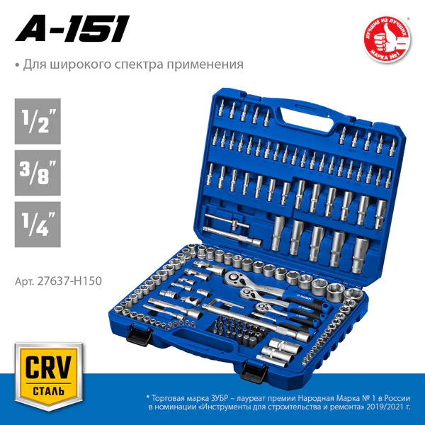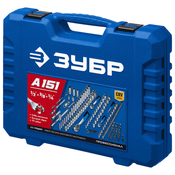 - ЗУБР А-151, 151 предм., (1/2″+ 3/8″+ 1/4″), универсальный набор инструмента, Профессионал (27637-H150) 27637-H150_z01