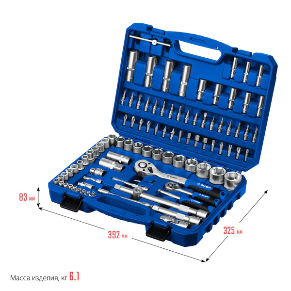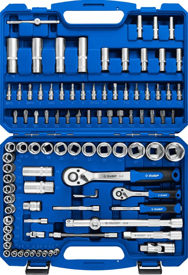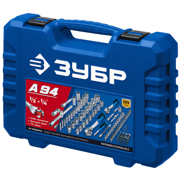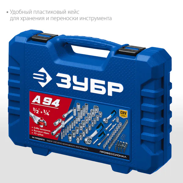 - ЗУБР А-94, 94 предм., (1/2″ + 1/4″), универсальный набор инструмента, Профессионал (27635-H94) 27635-H94_z01