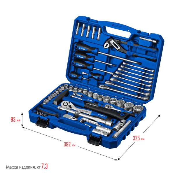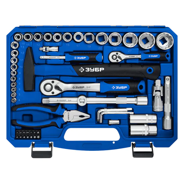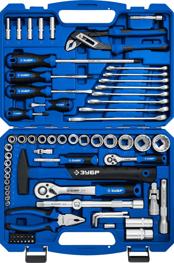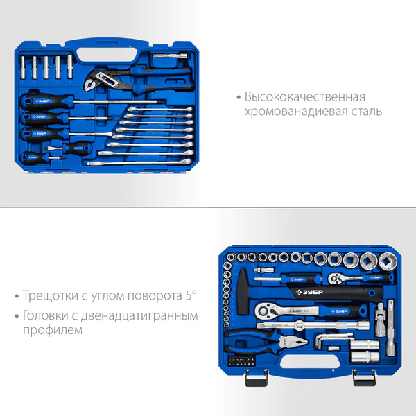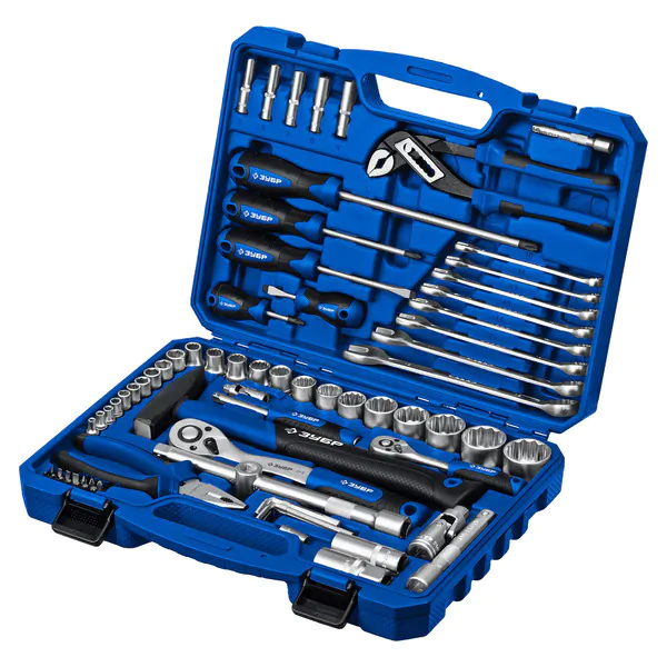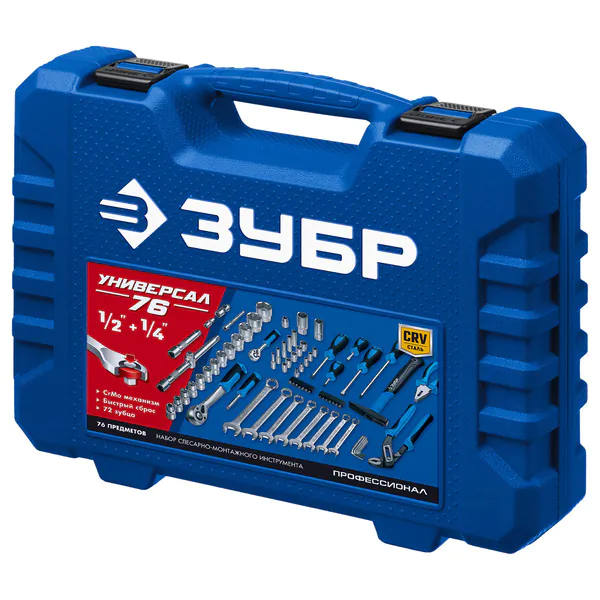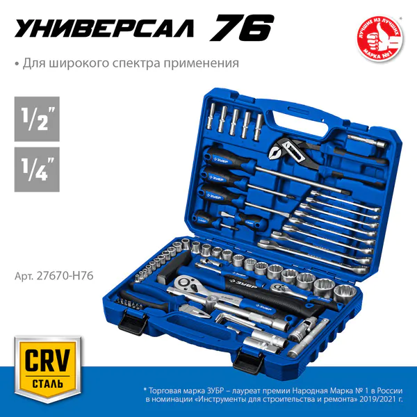 - ЗУБР Универсал-76, 76 предм., (1/2″+ 1/4″), универсальный набор инструмента, Профессионал (27670-H76)