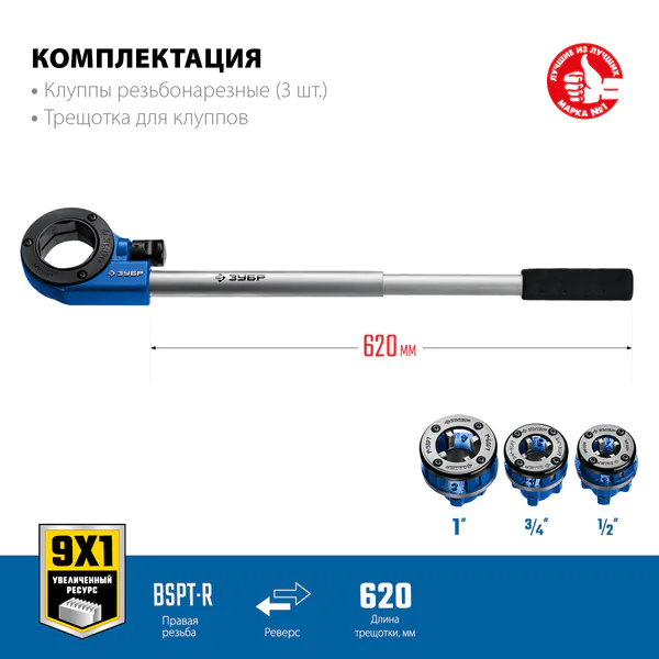 - ЗУБР набор клуппов с трещоткой №3, Профессионал (28270-H3) 28270-H3_z01