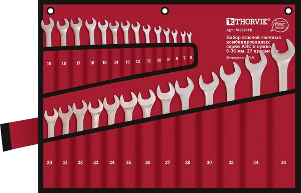 - Набор ключей гаечных комбинированных серии ARC в сумке, Thorvik 6-36 мм, 27 предметов W3S27TB
