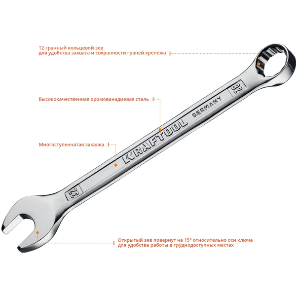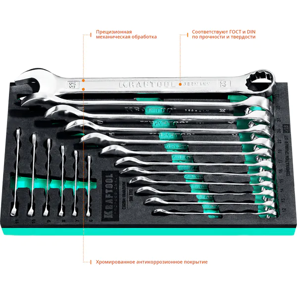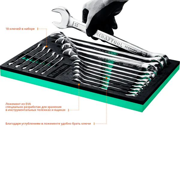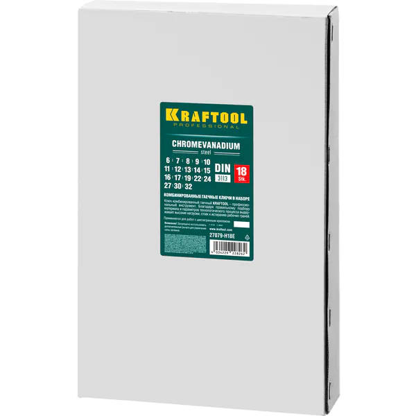 Набор ключей комбинированных и гаечных Kraftool 18шт 6-32мм 27079-H18E