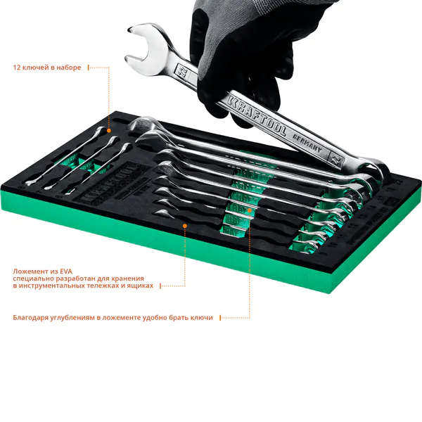 Набор комбинированных гаечных ключей Kraftool 6-22мм 27079-H12E