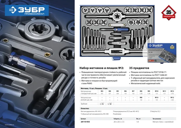 Набор метчиков и плашек Зубр 35 пред. 28110-H35