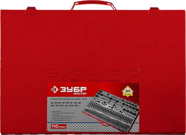 Набор метчиков и плашек Зубр Мастер сталь 9ХС 110 предм 28119-H110_z01