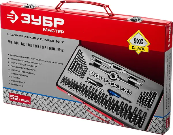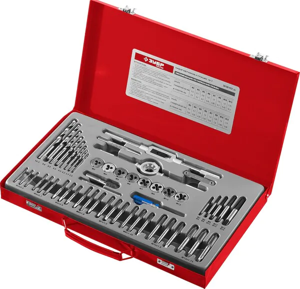 Набор метчиков и плашек Зубр "Мастер" сталь 9ХС 52 предмета 28130-H52_z01