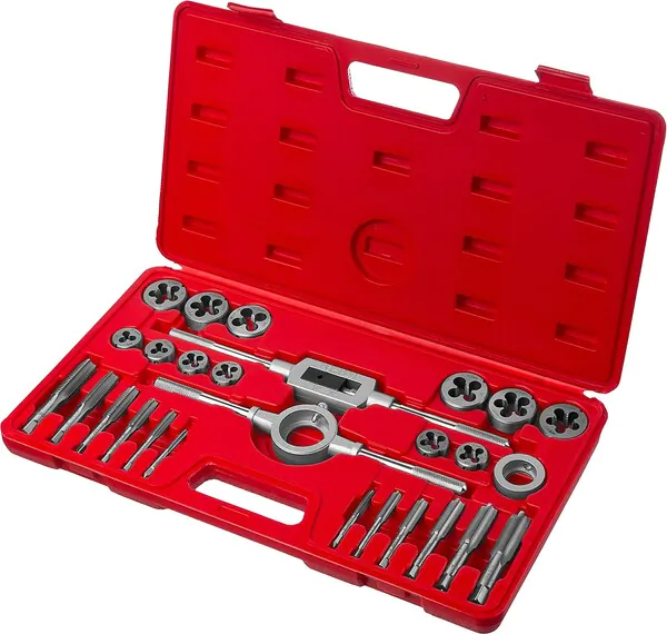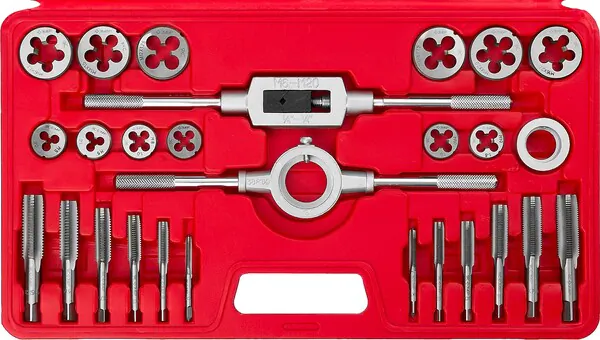 - ЗУБР 27 предм., сталь 9ХС, набор метчиков и плашек в пластиковом боксе (28123-H27)