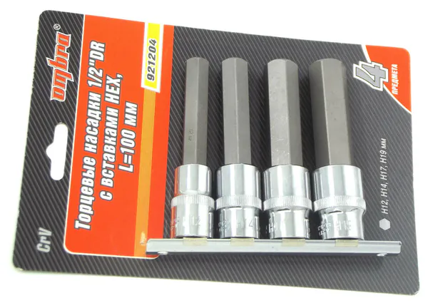 Набор насадок торцевых Ombra 1/2"DR с вставками-битами шестигранными на держателе, H12-H19, 100 мм, 4 предмета 921204