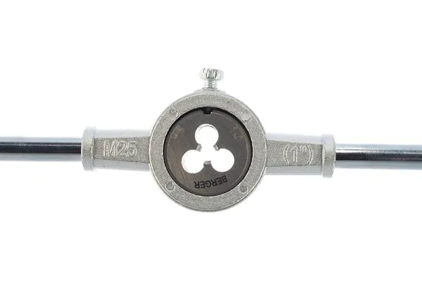 - • 7 шт. - плашка метрическая: М3х0,5; М4х0,7; М5х0,8; М6х1,0; М8х1,25; М10х1,5; М12х1,25 мм;